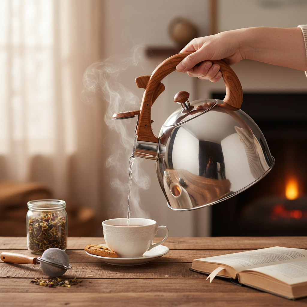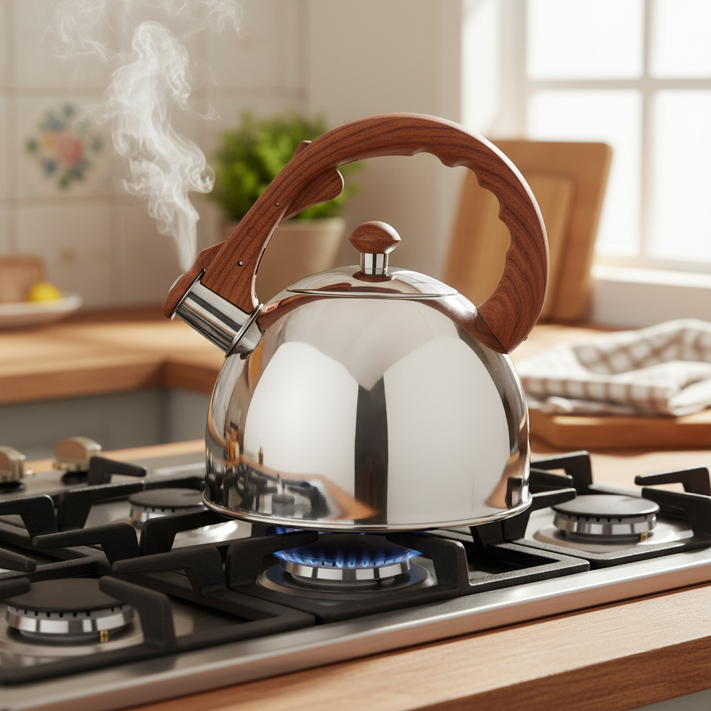 Fluitketel inductie met houtlook – klassiek, veilig en stijlvol