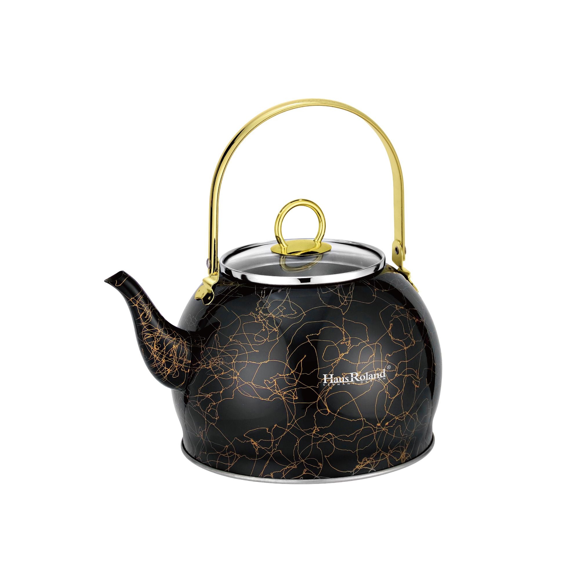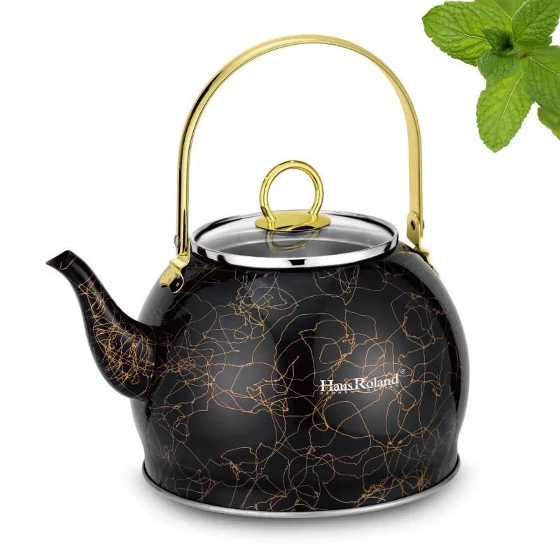 De Haus Roland waterketel 3 liter HR710-11 is ontworpen voor wie functionaliteit wil combineren met een luxueuze en klassieke uitstraling. De stevige stalen behuizing met zwarte afwerking en gouden marmerpatroon geeft direct karakter aan elke keuken. Dankzij de stabiele bodem warmt het water gelijkmatig op en is de waterketel geschikt voor inductie, gas en andere kookplaten. Het opklapbare handvat zorgt voor comfortabel schenken en eenvoudig opbergen, terwijl het ontbreken van een fluitje deze ketel ideaal maakt voor wie stil en gecontroleerd water wil koken.