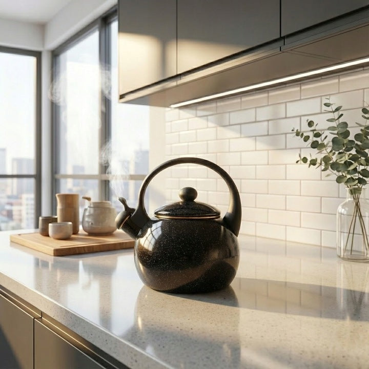 Met de Meyerhoff Black Sky fluitketel kies je voor een emaille inductie fluitketel die staat voor betrouwbaarheid, eenvoud en tijdloos design. Geen techniek, geen poespas – alleen water koken zoals het bedoeld is. Bestel nu en voeg een vaste waarde toe aan je keuken.