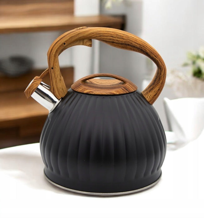 Meyerhoff Fluitketel 3 Liter – RVS Zwart Mat – Met Fluitje – Houtlook Handgreep – Inductie & Gas MH-4141