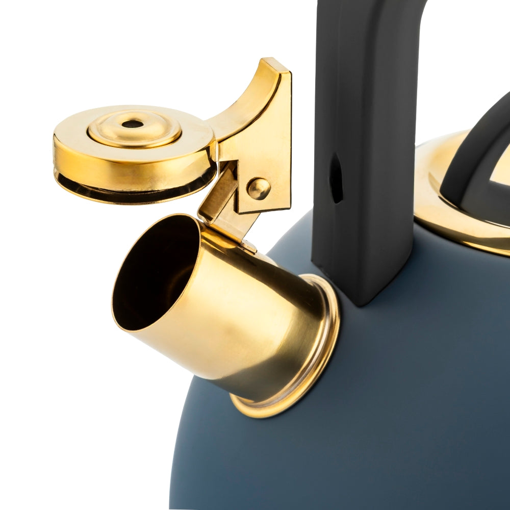 Valdinox Giovanni fluitketel 2,5L – RVS inductie fluitketel – Modern design met gouden accenten – Mat Blauw